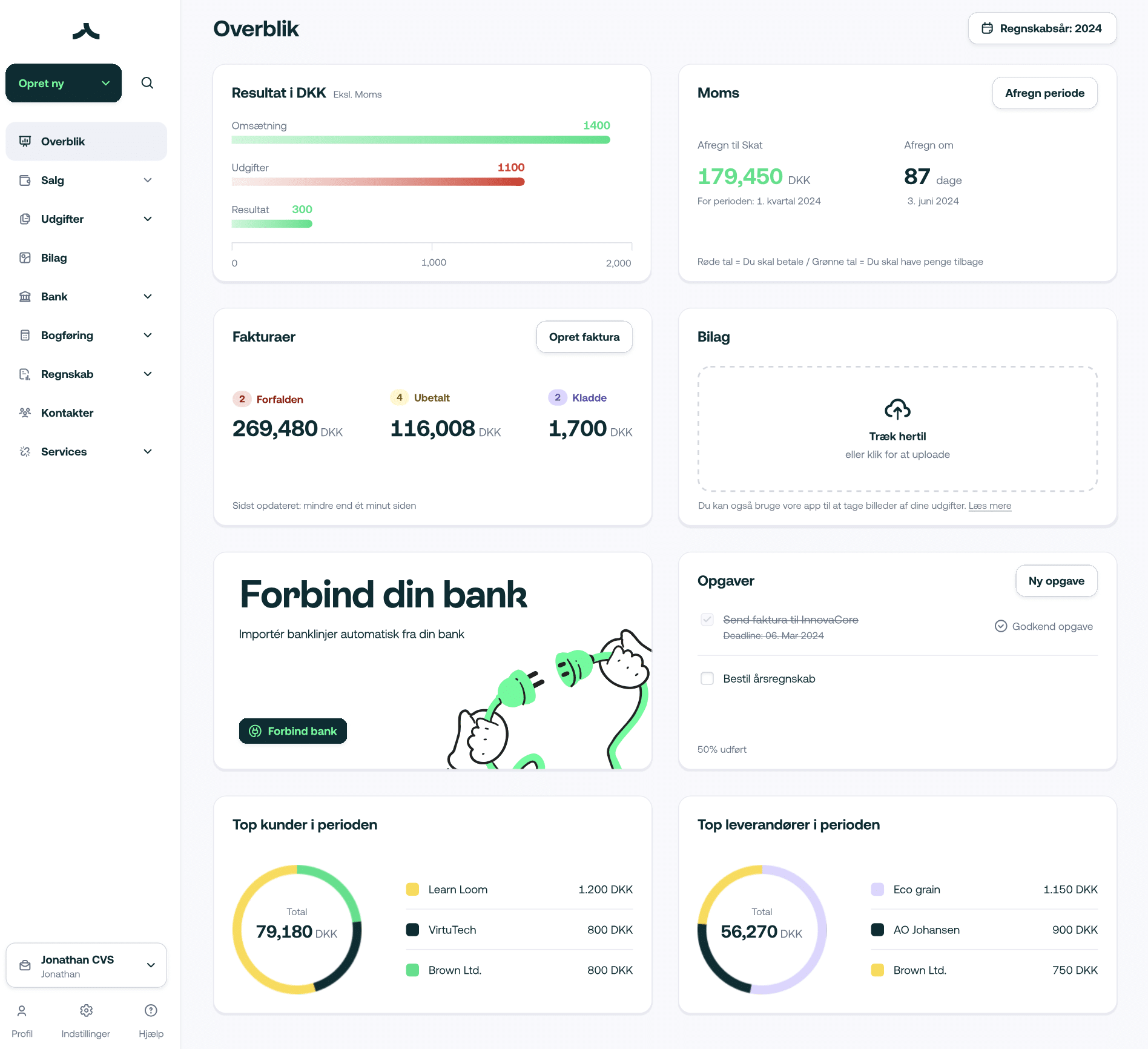 - Visuelle oversikter: Få grafisk fremstilt data som gjør det lettere å forstå inntekter, utgifter og likviditet.